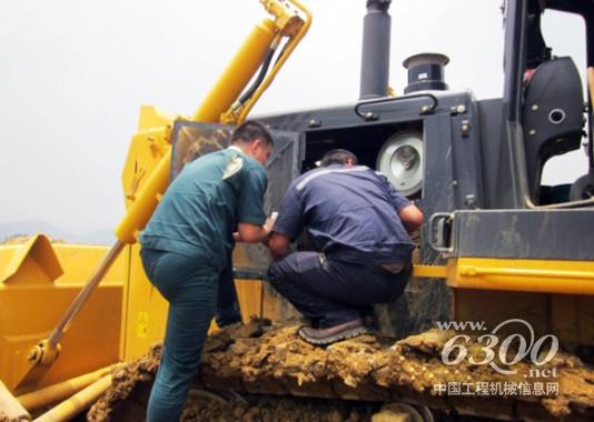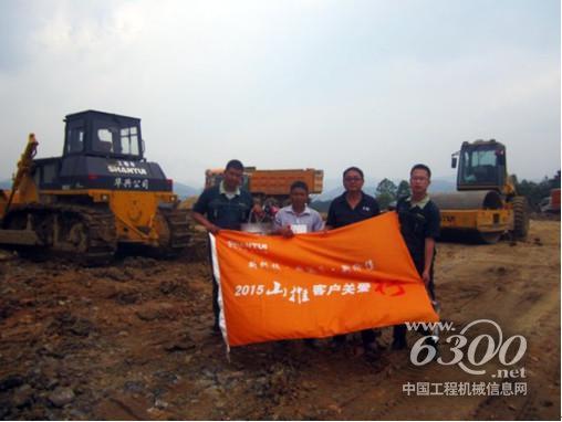 走访小组现场维修后,又对设备操作人员详细讲解了刹车的调整步骤,以及设备操作注意事项和保养知识。工地廖老板对山推服务人员说:“我是你们山推的老客户了,10年前买了你们第一台车,SD13推土机。那时是我自己在开,使用的那些年除了常规保养,也没有换过什么,修过什么,我对你们山推的服务和设备都是非常认可。从那以后就认准了你们这个品牌。之后我又购置了两台推土机、两台压路机及一台装载机。以前也做过道路施工,主要做驾校的改扩建。希望你们的产品越来越好,我的生意也越来越好,工程越来越大,然后还来买你们的产品。”