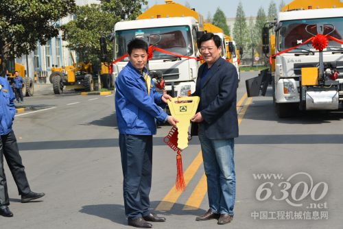 2014年4月4日,徐州市公路处采购徐工养护设备批量发车仪式在徐工道路机械事业部隆重举行。发车仪式现场,随着徐工道路营销公司养护机械营销部部长周广元将象征着这批启程出发设备的金钥匙交付给徐州市公路局,现场响起了热烈的掌声。