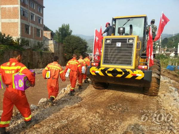 徐工援助灾区的LW500FN装载机在鲁甸向作业场地开进