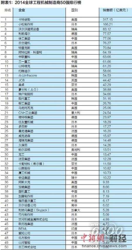 徐工位列2014全球行业第5位