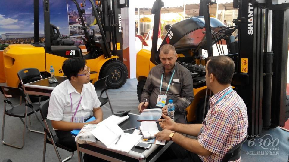 为期五天的第116届秋季广交会于2014年10月15日在广州琶洲国际会馆正式拉开序幕。山推叉车携2014年新机型亮相展会现场。(特别是新款全交流1.5T电车,3T S型高配柴油车等,本次参展车辆全部涂装为出口叉车量身定做的山推黄与亚光黑搭配流行色调---彰显出新机型的厚重且质感。亮相广交会第一天,就吸引了大量客户驻足观看,首日共接待洽谈客户41批次,主要来自于阿联酋,阿尔及利亚,巴西以及中南美洲等发展中国家,同时争取到来自俄罗斯、巴西和埃塞俄比亚等大型的专业叉车商有意就代理山推叉车进行进一步洽谈。