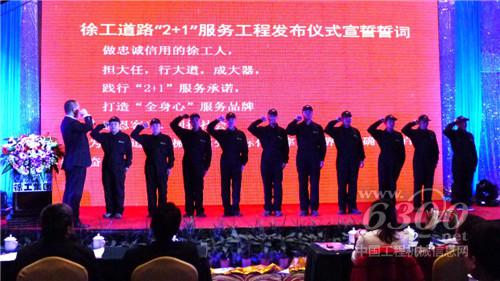 “做忠诚信用的徐工人;担大任,行大道,成大器;践行“2+1”服务承诺;打造“全身心”服务品牌;感恩客户,回报社会;为徐工道路机械“率先国际化,率先世界级,确保超百亿”而努力奋斗!”这是徐工道路机械服务工程师们的宣誓,这份宣誓更加增添了现场用户心中的那份安定,因为他们知道,只要有徐工在,他们的事业就有了保障。