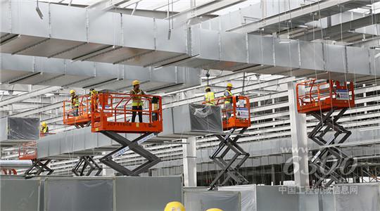 近日,山东某工地正在热火朝天忙碌着,鼎力高空作业平台正在积极地配合着工人们完成通风管道、吊顶的安装等相关工作,为加快工地建设献一份力量。