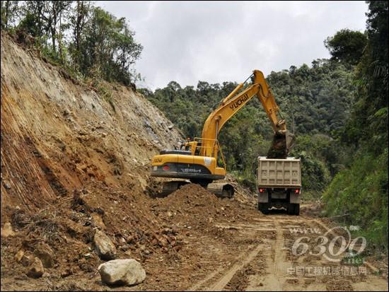 此次服务主要为了解决电气和液压泄露问题。在服务过程中,因当地治安不稳,玉柴重工服务人员时常遭遇危险,且每天在服务车上的时间超过6小时。由于施工恶劣环境,有些地方是服务车无法到达的,因此,玉柴重工服务人员只能在雨林徒步到达施工地点。在瓜亚基尔,玉柴YC360-8与小松挖掘机、沃尔沃挖掘机在山腰上的同一段路进行开山辟路的协同工作。客户表示,与其它品牌相比,玉柴挖掘机毫不逊色,充分肯定了玉柴产品的性能。完成售后服务后,玉柴重工工程师当地服务人员进行了培训,让他们对玉柴产品更有信心。