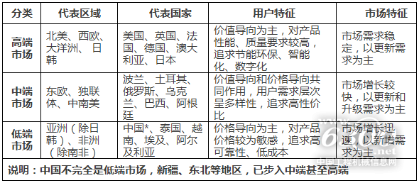 但好产品最终要落到用户的使用上,这里有两个关键问题,我们的高端产品客户在哪?我们怎么让这些客户接受我们高端产品。让纵观全球农机市场,市场格局大致细分如下: