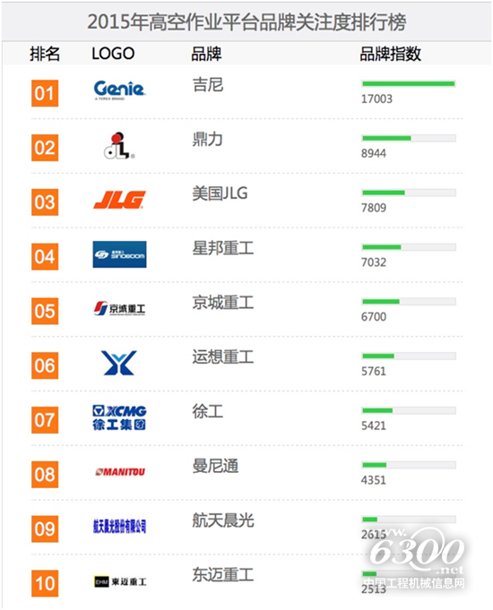 2016年1月12日,中国路面机械网和工程机械电商网发布了《2015中国工程机械用户品牌关注度排行榜》。这是继2009年中国路面机械网首次推出用户品牌关注度排行榜以来,连续第八年推出该榜单。其中,全球高空作业平台顶级品牌——吉尼再度进入2015中国高空作业平台用户品牌关注度十强。这也是继去年获此殊荣以来,吉尼已连续两年进入该榜单并荣膺榜首。