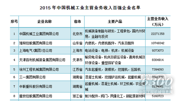 日前,由中国机械工业联合会、中国汽车工业协会根据2015年机械、汽车工业企业主要统计指标数据,核实排定出2015年机械工业百强、汽车工业三十强企业名单,发布有关企业名单及相关信息。徐州工程机械集团有限公司在榜单中排名第5位,行业居首。