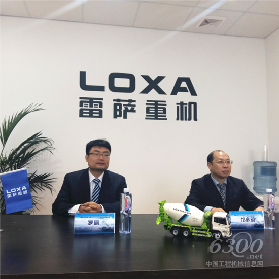雷萨重机营销公司总经理罗鹏先生(左)、事业部执行副总裁邝多明先生(右)接受媒体采访