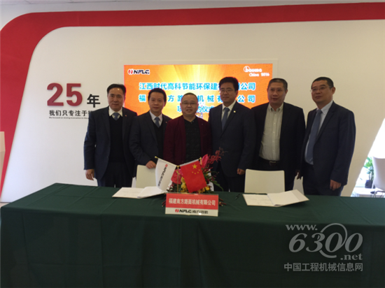 江西时代高科节能环保建材有限公司与福建南方路面机械有限公司在BaumaChina2016现场举行项目签约仪式