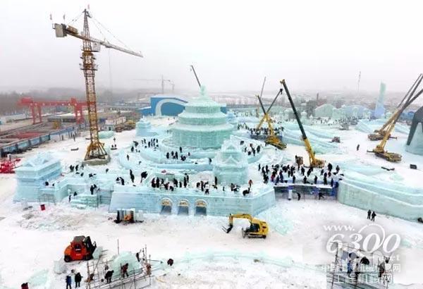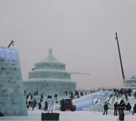 在采冰过程中,要通过起重机将重达数吨的冰块吊到平板车上,运到大世界以后,还要起重机吊下来,建造过程中,那就不用说,全都要起重机来完成。所以,我们内部施工人员都经常开玩笑说:这要不是徐工起重机,咱这大世界还真不好建。