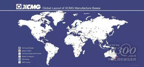 目前,徐工在海外拥有34个备件中心、40个分(子)公司和办事处、300个国际经销商、500余家签约服务商,巴西基地及6大海外装配厂陆续投产,设立德国、美国、巴西研发中心和欧洲采购中心,并购德国施维英等3家欧洲企业,年出口万台主机到176个国家,在巴西、俄罗斯、澳洲、中亚、中东等市场占有率居国际品牌前3位。