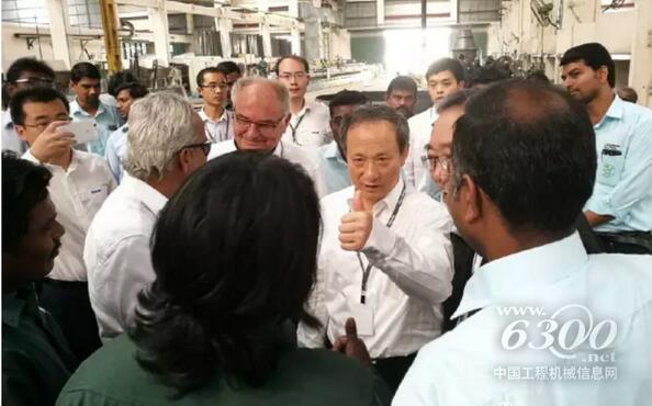在印度施维英工厂,当地工人们欢欣鼓舞,争着与王民董事长握手。王民董事长分别听取了德国施维英公司和印度施维英公司高管团队的经营汇报。在听取了施维英印度销售团队的汇报后,王民董事长表示:印度市场很有潜力,2017年是徐工印度年,将选择徐工的优势产品,大力推进印度的市场开拓。