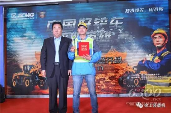 中国好铲车“铲业英雄”争霸赛武汉站颁奖典礼隆重举行,来自武汉钢铁集团的陈盼盼荣获本站比赛第一名,梁总为其颁奖