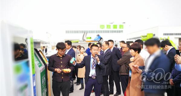 与会嘉宾在中联重科(宁夏)环境产业园参观中联智能垃圾袋发放机等设备