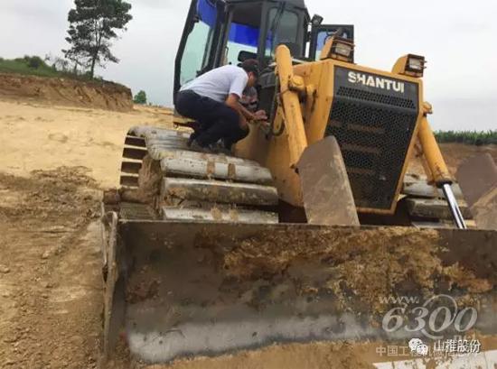 走访小组第一站,来到个体用户林老板设备所在工地。该客户近年来陆续购买了3台SD16TL推土机和1台SL50W装载机。正在作业的是用户于2015年12月购买的一台推土机,目前已工作2000余小时。据用户反映,推土机在重载工作情况下会出现车头摆动幅度大的情况。据此,服务人员立即对设备进行了检查,判断为机头支架出现故障,并立即联系准备相关备件进行更换。为用户解决了后顾之忧,获得用户称赞。