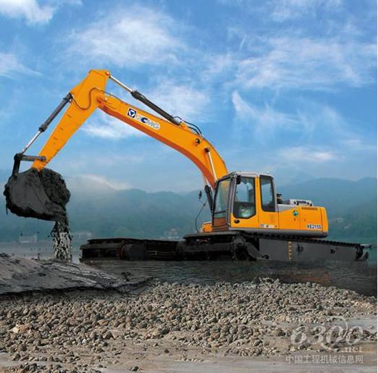 徐工XE215S水陆两栖挖掘机是在XE215C成熟技术基础上,针对滩土特点、气候环境进行研发设计,除具有一般挖掘机的功能外,还具有接地比压低、水上浮航的特点,适用于陆地、沼泽软地面及淤泥及水面安全行走与作业的新型多用途挖掘机。该机器采用了自有的优化动力、液压系统和电气系统,作业效率和可靠性更高;新型密封式浮箱履带行走结构,克服了水陆两用液压挖掘机行走系统易磨损、寿命短、阻力大、功耗高的不足;在维护保养、专场转运和工况通用性方面具有较强的市场竞争力。