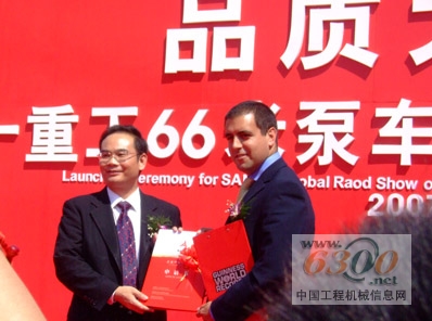 “‘品质天下行’三一重工66米泵车全球巡展正式启航!”9月20日,三一工业城在典型的“三一红”映衬下显得格外喜庆,迎空舒展开来的66米臂架泵车以其伟岸的身姿迎接着人们惊叹的目光。随着三一重工董事长梁稳根的一声宣告,三一工业城礼花齐放,鼓乐齐鸣。来自中国工程机械行业的专家,湖南省、长沙市有关领导,三一的客户代表以及各大媒体记者共计300多人喜聚一堂,见证了民族品牌问鼎吉尼斯纪录的辉煌,凤凰台著名主持人许戈辉也来到启航仪式现场助阵。
