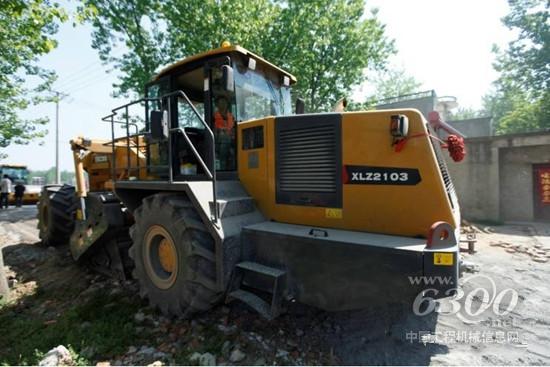 通过现场施工图片可以清楚看到,即便是农村道路,地质条件依然复杂:有大的石块、建筑垃圾甚至是钢筋金属物品等,恶劣的施工条件给徐工XLZ2103的施工提出了相当大的挑战,但徐工冷再生依旧可以出色的完成任务。