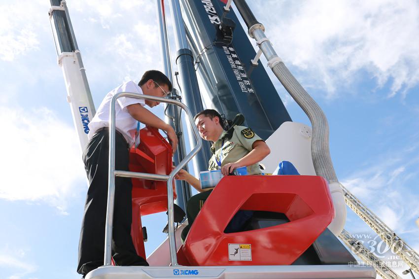 现场体验,客户试操徐工JP62大流量大跨距石化专用举高喷射消防车