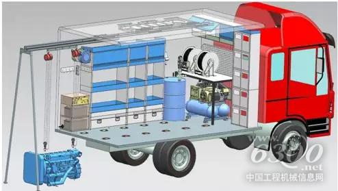 1、维修工具和配件更全,有模块化的维修设备、维修诊断工具、配件存放区,无须每次重新配备工具和配件才能外出救援;