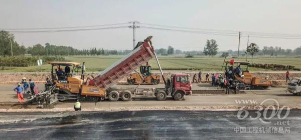 根据项目部配比方案和施工要求,徐工2台超厚型RP953T摊铺机、2台大吨位XS333压路机、1台高端型XD133双钢轮压路机、1台XP303K胶轮压路机组团进场作业,助力山东省菏泽市一级公路施工。