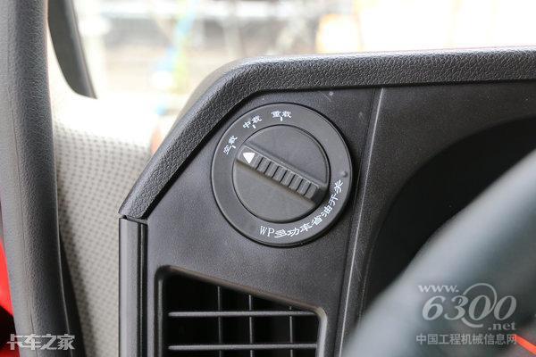 仪表盘的右上角为潍柴发动机的多功率省油开关,分为空载、中载和重载三个档位,建议用户可以在空车的时候选择中载,载货的情况之下选择重载。至于空载,不建议过多的使用,过小的动力输出反而会影响油耗。