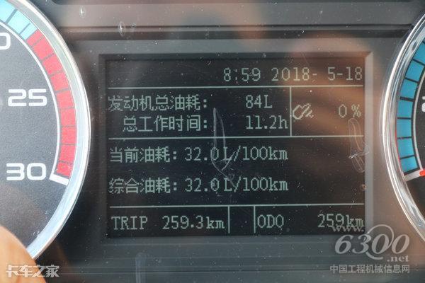 仪表盘采用传统的指针来显示发动机转速、车速以及水温和燃油量,上方的警示区域用不同颜色的符号来显示车辆正常/不正常情况,方便用户查看。中间的液晶显示屏可以显示时间、辅助/刹车系统气压、电瓶电压、尿素溶液的当前剩余量、机油压力和里程等信息。