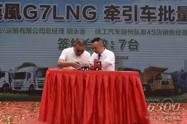 5月30日上午12时,伴随着激昂的鼓声,徐工重卡-徐州峻豪100台漢風G7 LNG牵引车批量交付庆典暨徐工重卡徐州宏发客户品鉴会在徐州市银地商用车大市场隆重举行。