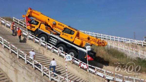 所有的静态检查以及演示都已结束,XCA60E以近乎完美的答卷结束了静态检查项目。接下来面临的,也是目前全球行业内全地面起重机从未进行过的“极限挑战”——60%坡道爬坡验证,这也是某些越野汽车的爬坡极限,而今天用户将要求它在来自中国徐工的起重机上实现。测试内容是司机将驾驶XCA60_E通过坡度为60%(折合角度为31°)的试验坡道。这考验的不仅是车辆的爬坡能力,还考验车辆的驻坡能力、纵向稳定性、车辆通过性,即使欧美制造商也尚未开展如此大角度的实际爬坡验证。