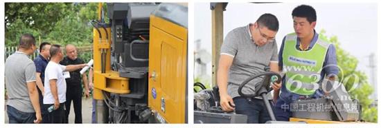当天上午,冒着雨过天晴后的桑拿天,各位嘉宾在徐工道路区域总经理赵洪、河北路威工程机械贸易有限公司总经理苏刚、徐工道路区域主任时久洲和刘昆的陪同下共同观摩了XM1003、XM503铣刨机的精彩演示,徐工道路营销公司主管张帆主持了设备演示活动,同时向嘉宾介绍产品细节并解答疑问。