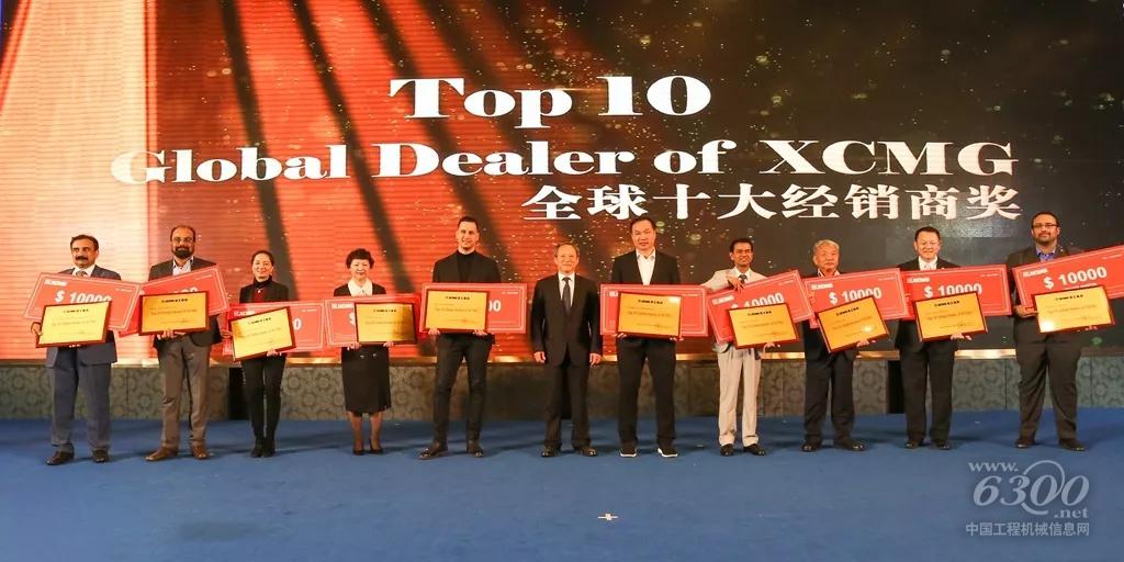 晚宴现场,为表彰在徐工国际化的进程中做出突出贡献的海外经销商及客户,隆重颁发了全球五星服务奖、全球公益大使奖、突出贡献奖、全球VIP合作典范奖、全球十大经销商等相关奖项。