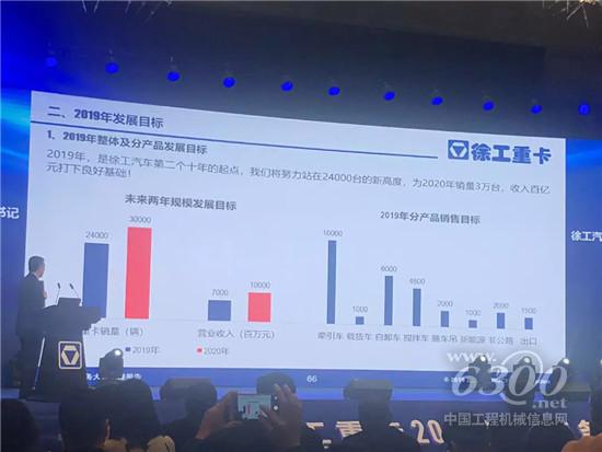 12月22日,主题为“同心戮力十年路 逐梦行稳致未来”的徐工重卡2019商务年会在徐州召开。会上,徐工汽车事业部总经理助理陈景哲表示,面对复杂多变的市场形势,2019年徐工重卡确立了2.4万台的销售目标,将为2020年实现销量3万台、收入百亿元的“十三五”目标打下良好基础。