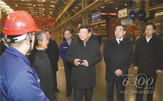 1月9日上午,娄勤俭书记来到徐工集团重型机械有限公司的起重机底盘装配车间,详细了解徐工生产经营、技术创新、获得荣誉、市场布局等最新情况。在工业互联网大屏前,娄勤俭书记详细询问了徐工在信息化方面近年来的发展变化。当听到2018年徐工以“三个数字化车间、九条智能生产线”为核心建设轮式起重机智能工厂,并入选省级产业集群智能工厂项目时,他点头称赞,高度认可徐工在“互联网+智能制造”方面取得的突破,并鼓励徐工发挥自身优势,将成功经验复制到其他行业,带动跨行业发展。