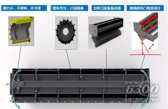 2、撒布均匀、计量精确:通过大量的试验数据积累,周圈12-18个料槽处于粉料计量与撒布最为精准的状态,料槽数量越多,撒布越均匀,徐工配备了周圈15个料槽的包胶撒布器,制造精度高,撒布较同行更加均匀。