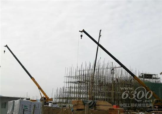 山东威海荣成:钢结构安装,8台徐工K系列起重机(QY25K5-1,QY25K-2)“铮铮铁骨”对战“钢筋铁骨”,助力荣成生活广场建设。