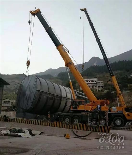 重庆巫山县段高铁基建建设现场,XCT90 和QY70K-1吊起25吨重的“大胖子”