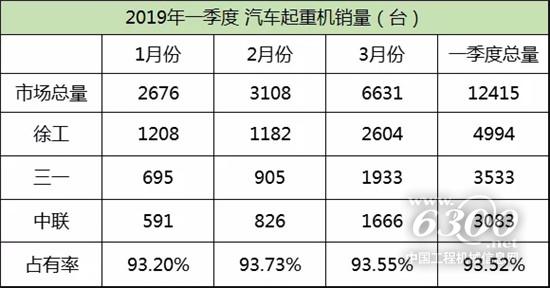 徐工、三一、中联三大厂家销售总量,前三个月占比均超过93%。