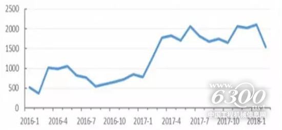 2017年1-11月工程起重机累计销售30018台,是自2011年断崖式下跌后首次出现的正增长。