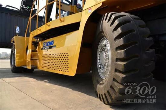 200KW大扭矩驱动电机匹配AMT变速箱,可输出350KN牵 引力,使车辆在瞬间即可达到25km/h的速度。而专有的徐工液压技术,可在不增加系统流量的前提下,各项动作提速33%。纯电动动力转化快的特点在XCS45上表现的淋漓尽致,所以才能这么高效的完成港口集装箱转运业务。