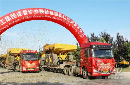 5月29日,徐工集团成套矿业设备出口非洲发车仪式在徐工矿机隆重举行。徐工大型成套矿业机械设备凭借性能卓越、高效耐用等优势批量中标非洲某大型矿山项目,该项目涵盖XE700D矿用挖掘机、XDA40铰接式自卸车、GR3505矿用平地机、矿用洒水车等数十台徐工高端成套施工设备。