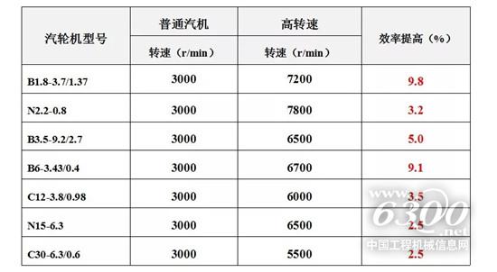 常规汽轮机转速一般为3000转/分,而高转速汽轮机转速一般为5500-10000转/分,同样功率的汽轮机,其体积与转速的立方成反比,由于体积大大缩小,漏气损失、部分进汽损失、自身耗功等将大大降低,根据不同的参数汽轮机的内效率可以提高2%-10%,节能效果明显。