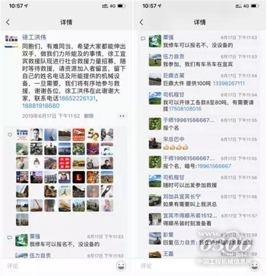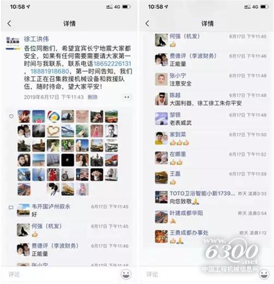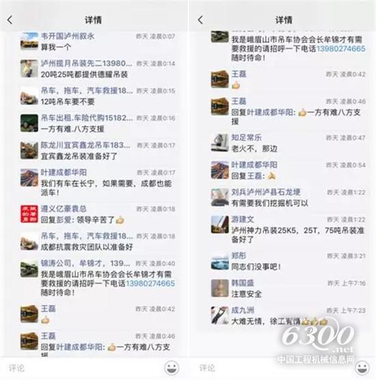 地震发生,徐工救援队第一时间做出响应,以徐工起重机械事业部华南营销中心总经理彭爱、成都代表处主任宏伟和5名销售服务人员组成的救援队火速集结,调度救援车辆、前往地震灾区。面对灾难,总有一些令人感动的画面,洪伟在第一时间发出的一条朋友圈,引起整个四川吊装用户的积极响应。