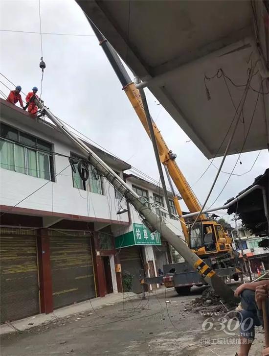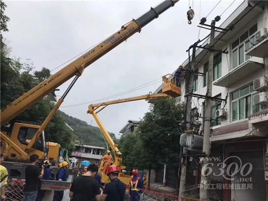 在徐工救援队的整体指挥下,从灾区附近紧急调度6台起重机,连夜配合抗震救灾指挥部,深入重灾区参与道路疏通、电力恢复,并配合消防武警完成倒塌房屋搜救。