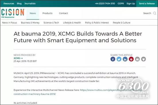德国宝马展,徐工受到德国电视二台、英国门户网站PR Newswire UK等近百家媒体的关注