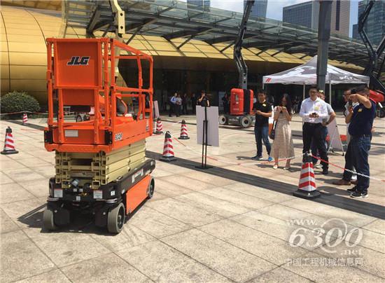 图为捷尔杰在IPAF亚洲峰会现场演示远程遥控高空作业平台的操作