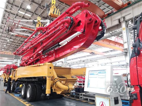 三一的泵车是该企业的拳头产品,图为正在组装的泵车。蒋云侠 摄