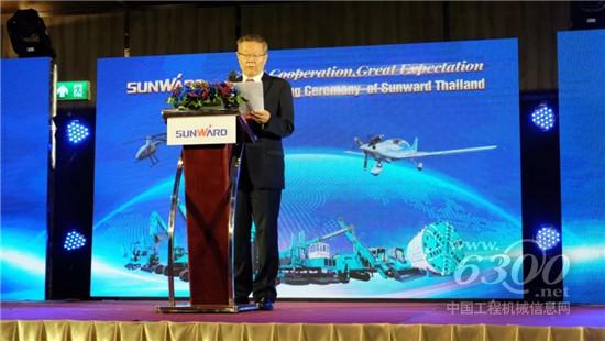 山河智能董事长致欢迎词,他表示,“泰国是东盟极具影响力的市场,是山河智能长期、重点发展的目标市场。”何清华对泰国子公司的成立抱有极大期望,“希望子公司这个平台,能很好地辐射整个泰国市场,以充足的整机和备件库存,为客户提供更加快捷的服务。