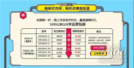 优惠政策上,本次三一路面嗨购节,全线明星产品将击穿底价,直降六万元!全新H系列,实现以标配底价享高配产品。经典C8系列,更是绝版限量200台,售完即止。