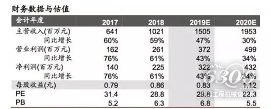 2019年上半年营收中,艾迪精密破碎锤、液压件、其他业务的收入分别为5.38亿元、2.3亿元、0.05亿元,子母公司往来业务抵销0.3亿元。破碎业务收入占比超过70%,同比增长62.19%,超过营收增长14.63%。预计破碎业务全年将会保持高速增长,收入占比预计在65%左右。