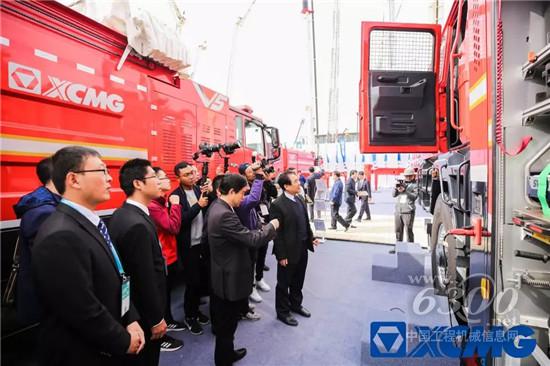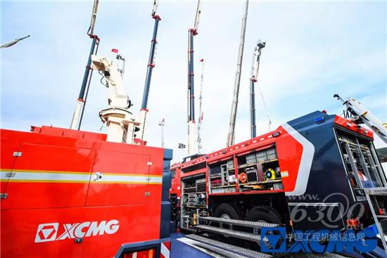 在徐工展区,多功能抢险救援车、抛沙灭火车、挖掘抽吸车、救援器材车等5款全新面孔的应急救援装备吸引了众多参观者和参展商的好奇目光。